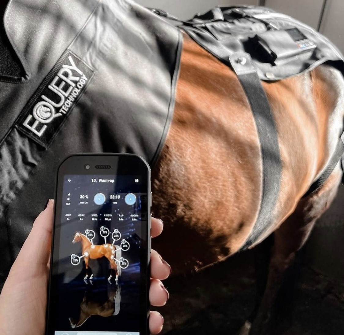 In 60 minuten tijd krijg het paard een volledige NMES lichaamstraining die 18 x efficiënter is dan een klassieke training. Tijdens een Equery sessie worden gelijktijdig meer dan 90% van de spiervezels gestimuleerd. Tijdens een gewone training is dit slechts 30%. Bovendien worden ook de diepliggende en meest verwaarloosde spieren getraind. Hierdoor krijgt het metabolisme een enorme boost.